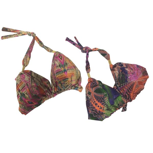 Vestido de baño de dos piezas. Con Copa triangular. Estampado étnico.